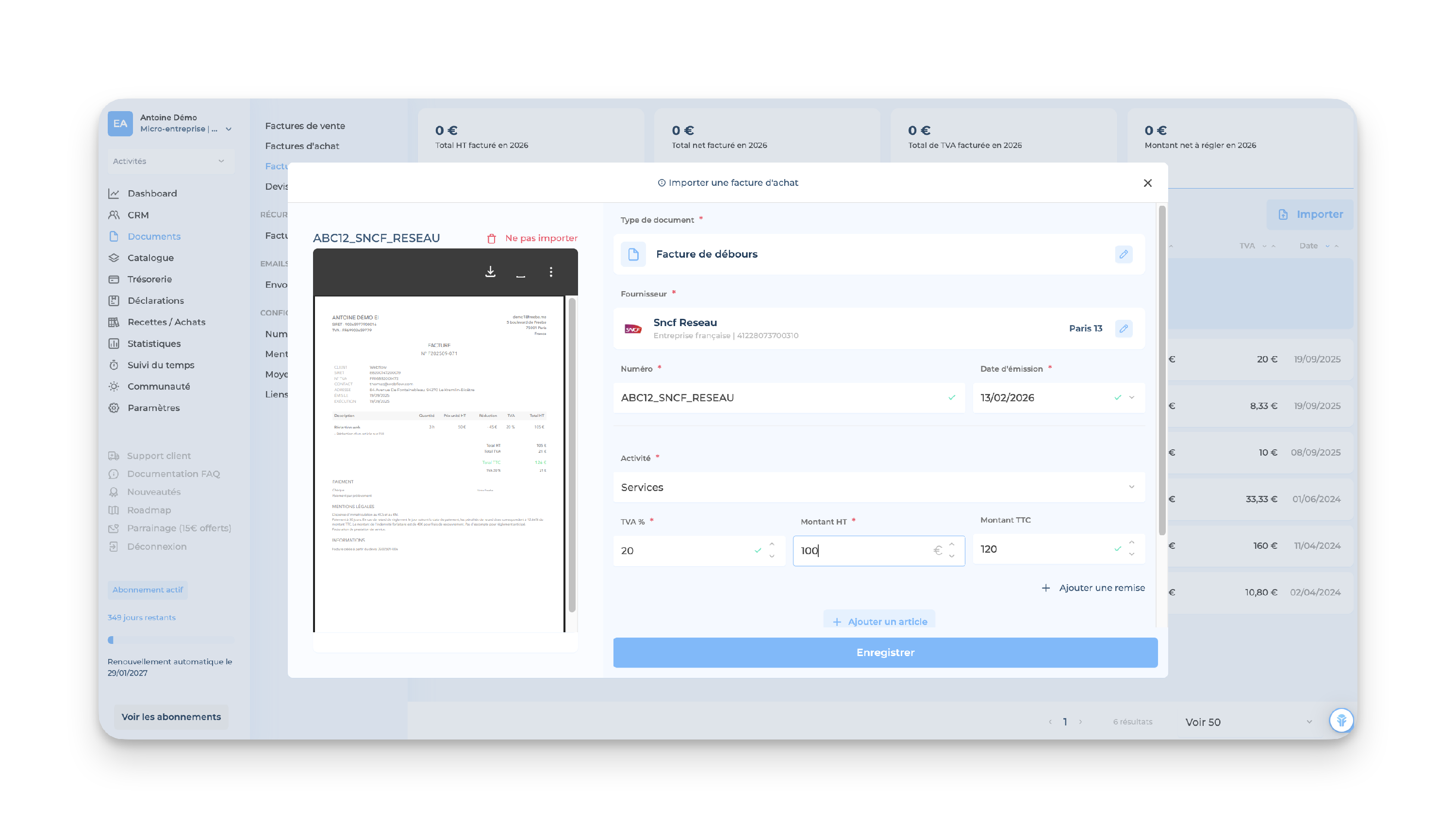👉🏻 Après avoir importé le PDF, Freebe te demandera de compléter toutes les informations nécessaires (date d'émission, numéro, titre, montant, ...) :