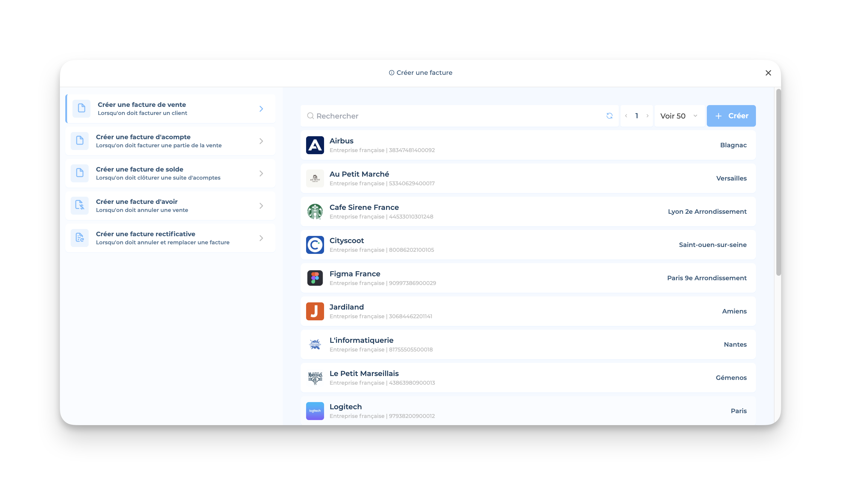 👉🏻 Freebe te demandera ensuite de choisir le type de facture et de choisir un client :