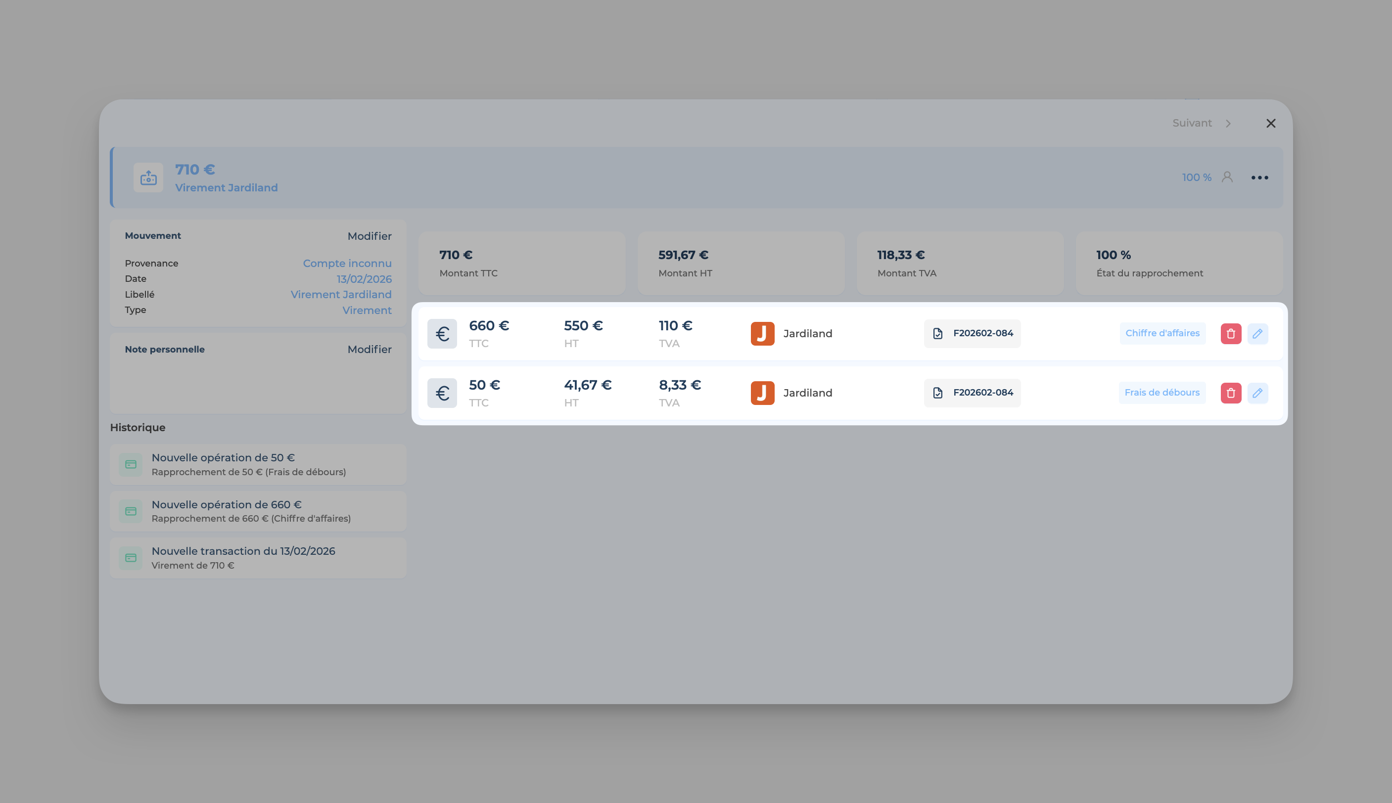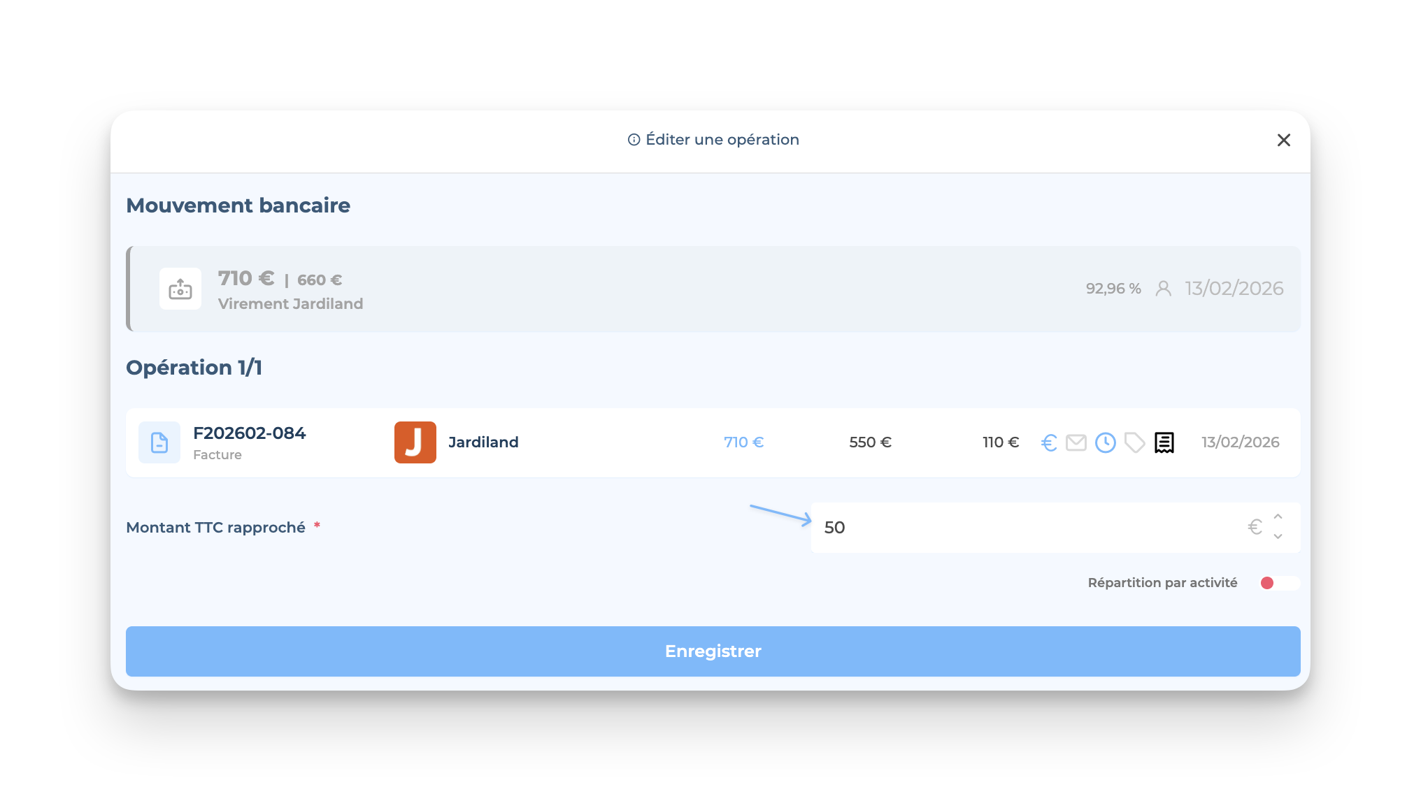 👉🏻 Freebe calculera de façon automatique le montant de cette nouvelle opération (= le débours) puisqu'il se basera sur le montant restant à régler. :