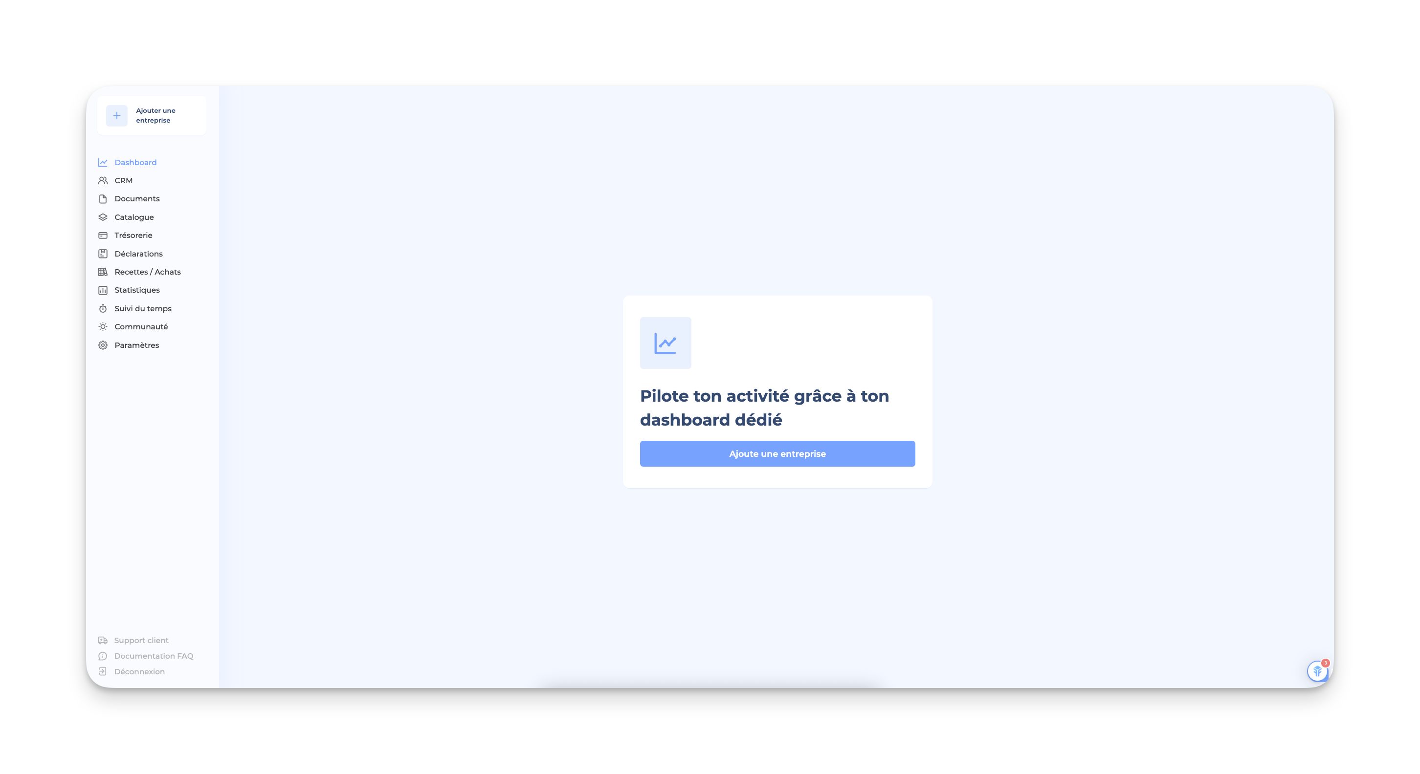 👉🏻 Dans la première situation, il te suffira de cliquer sur « Ajouter une entreprise » lorsque tu arriveras sur ton espace pour la première fois :