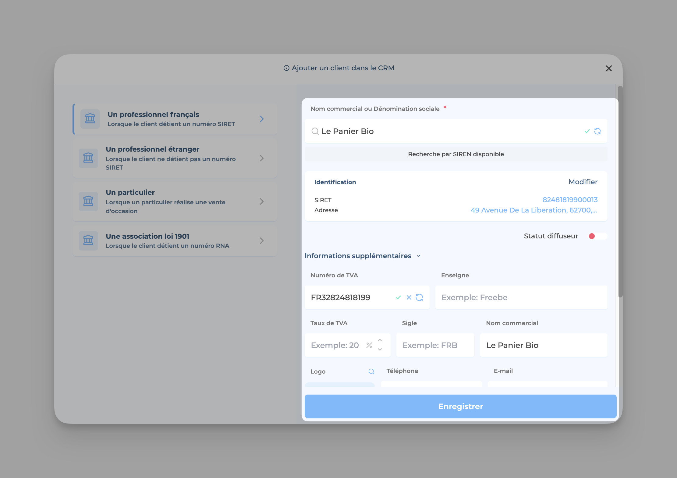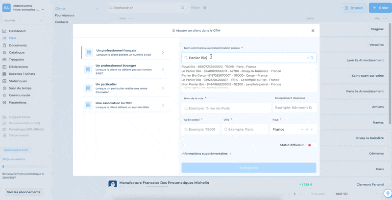 👉🏻 Vérifie ou modifie les informations de la fiche client. Si tout est ok, clique sur Enregistrer.